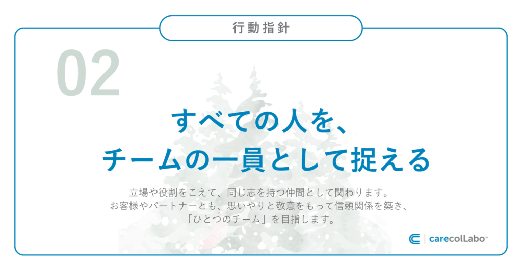 二つ目の行動指針「すべての人を、チームの一員として捉える」。メンバーの想いを届けます。