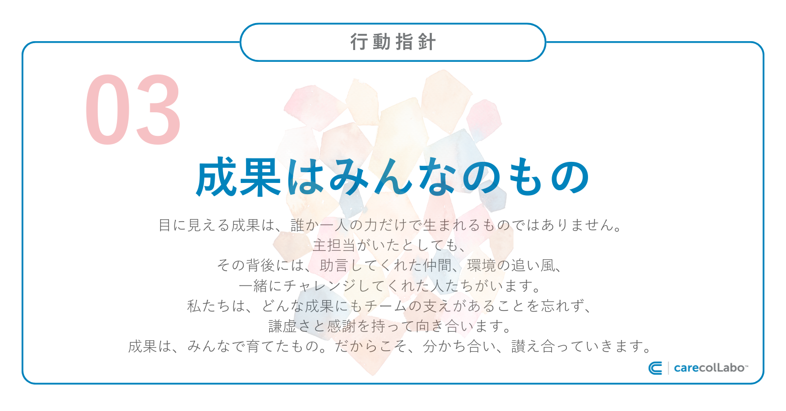 ケアコラボの行動指針03には、こうあります。